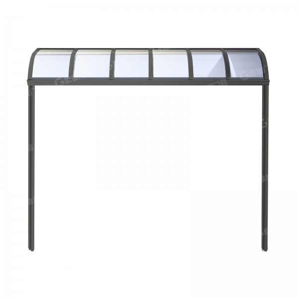 Curved and sloping roof design, along with angled support columns and uprights, create a product that is both aesthetically pleasing and practical.